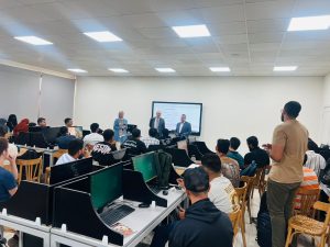 واختتم رئيس الجامعة جولته بحوار مفتوح مع الطلاب واستفساراتهم حول العملية التعليمية واهمية تأهيلهم لإحتياجات ومتطلبات سوق العمل الفعلية، إضافة إلى المتطلبات الواجب توافرها للطلاب للتخرج، متمنيًا للجميع دوام التوفيق والنجاح.