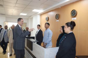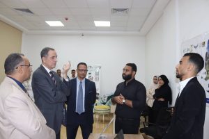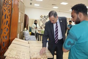 استهل الدكتور الجيوشي زيارته بتفقّد عدد من معارض الجامعة المتميزة، شملت معرض الصناعات الخشبية، ومعرض التصنيع الغذائي، ومعرض المشاريع الطلابية المبتكرة التي حصدت جوائز محلية وإقليمية، كما قام بجولة داخل الورش والمعامل، واطّلع على الإمكانيات التقنية الحديثة التي توفرها الجامعة لطلابها، إلى جانب زيارة الغرف الفندقية التابعة لشركة السياحة بالجامعة.