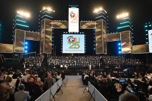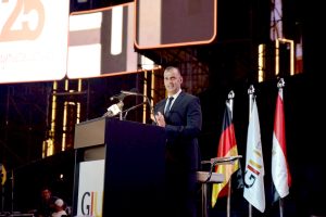 بدأت مراسم الإحتفالية بعزف السلام الجمهورى لمصر وألمانيا، أعقب ذلك كلمة من جانب الدكتور منصور أشاد خلالها بالحضور وأعلن إطلاق تسمية هذه الدفعة من خريجي عام 2025 “سفراء الامل والسلام”، مؤكداً بأنه يشارك في هذه الإحتفالية العديد من الهيئات المصرية والألمانية والدولية لكونها تمثل نقطة فاصلة في حياة الخريجين، فهي تمثل لنا ولكم أيها الخريجين مستقبل واستقرار لأوطانكم ومجتمعاتكم في مصر والمانيا والعالم بل تعد نقطة إرتكاز لتجربة فريدة تؤكد نجاح التعليم الألماني العالي في مصر العابر للحدود يستشعره الجميع في مصر وألمانيا، فنسبة الشهادات الألمانية الممنوحة لخريجي الجامعتين GUC و GIU تمثل ما يقرب من 60% من الشهادات الألمانية العابرة للحدود على مستوى دول العالم.