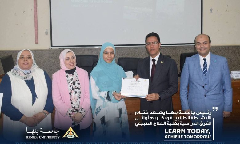رئيس جامعة بنها يشهد ختام الأنشطة الطلابية وتكريم أوائل الفرق الدراسية بكلية العلاج الطبيعي