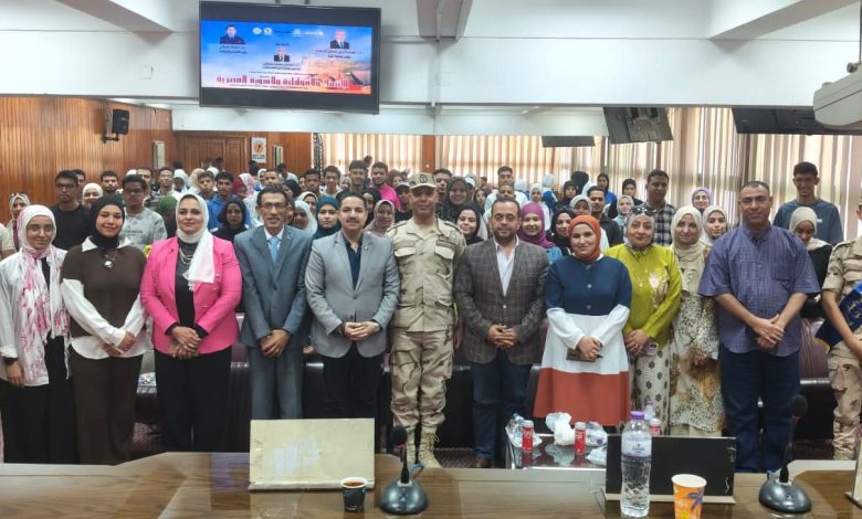 حاضر الندوة العميد أركان حرب محمد إسماعيل مدير إدارة التربية العسكرية بالجامعة، والدكتور بليغ حمدي الأستاذ بكلية التربية، وبحضور الدكتور حسام عبد الرحيم منسق عام الأنشطة الطلابية، ووليد عبد القوي مدير عام رعاية الطلاب.
