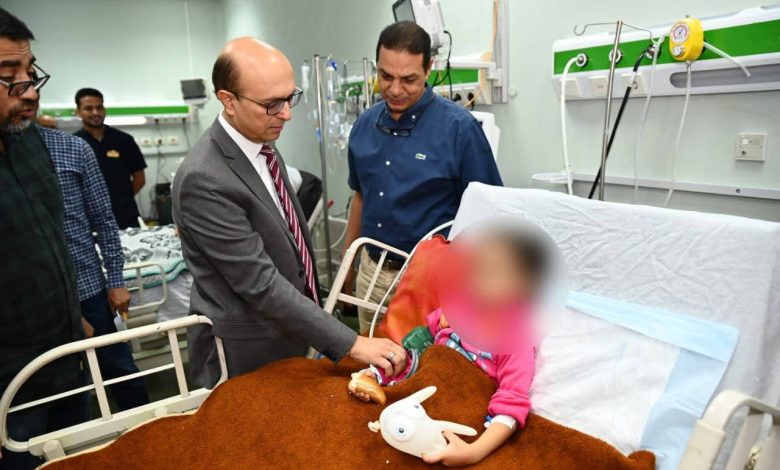 رئيس جامعة أسيوط يتفقد الحالة الصحية للأطفال المصابين في حادث قرية منقباد بمستشفى الإصابات