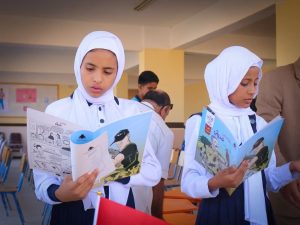 وشهدت القافلة، التي أقيمت فعالياتها اليوم بمجمع مدارس رفح الذي يضم نحو ٢٥٠٠ طفل من المرحلتين الابتدائية والإعدادية من أبناء رفح المصرية والمقيمين فيها من أبناء غزة، إقامة معرض للكتاب وتوزيع عدد من الكتب على جميع الأطفال، إلى جانب عروض فنية متميزة قدمتها فرقة طلائع الفنون الشعبية، ومجموعة من ورش الرسم، ومسرحية “السمسمية”.