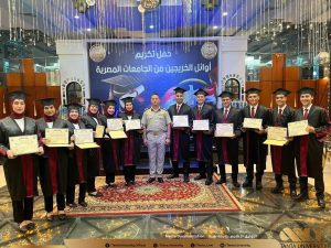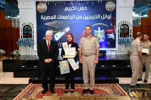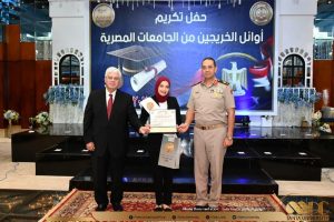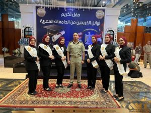 شهدت الاحتفالية الكبرى التي نظمتها قوات الدفاع الشعبي والعسكري لتكريم أوائل الجامعات الحكومية المصرية لدفعتي 2023-2024 و 2024-2025، بحضور الدكتور محمد أيمن عاشور، وزير التعليم العالي والبحث العلمي، واللواء أركان حرب هشام حسني، قائد قوات الدفاع الشعبي والعسكري، تكريم الطالبة إسراء بدير عطيه محمد، من قسم التربية الموسيقية بكلية التربية النوعية، والطالبة مشيرة سعيد شمس الدين العطار، من قسم تكنولوجيا التعليم بكلية التربية النوعية.