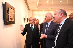 كما قدم الدكتور أحمد صلاح دياب شرحًا تفصيليًا لمحتوى المعرض، موضحًا فكرته القائمة على دمج خامات الخزف مع المكونات والدوائر الإلكترونية المستهلكة لإنتاج أعمال فنية تجمع بين التقنية والجمال، بما يحقق قيمة فنية متكاملة.