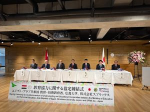 وقد وقع الاتفاق من جانب جامعة هيروشيما الحكومية اليابانية ميتسو أوتشي رئيس الجامعة، كما وقع من جانب مؤسسة “سبريكس” الرئيس التنفيذي للمؤسسة تسوني ايشي، وجاء ذلك بحضور الدكتور هاني هلال الأمين العام للشراكة المصرية اليابانية للتعليم.