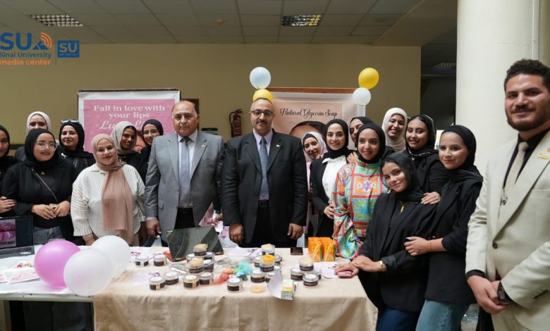 في إطار دعم جامعة سيناء للابتكار وتنمية المهارات التطبيقية لدى طلابها، نظم قسم الصيدلانيات والصيدلة الصناعية بكلية الصيدلة المعرض السنوي الثاني لمستحضرات التجميل، وذلك برعاية الدكتورة جيهان فكري رئيس الجامعة، والدكتور عبد الحميد عبده نائب رئيس الجامعة لشئون التعليم والطلاب – فرع العريش، وبإشراف الدكتورة ياسمين مرتجي رئيس قسم الصيدلانيات، والدكتورة هبة عوض.