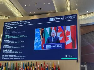 ألقى الدكتور أيمن عاشور وزير التعليم العالي والبحث العلمي، كلمة مصر أمام الدورة الثالثة والأربعين للمؤتمر العام لمنظمة الأمم المتحدة للتربية والعلم والثقافة (اليونسكو) في مدينة سمرقند بجمهورية أوزبكستان، وذلك بحضور رئيس المؤتمر العام، ورئيسة المجلس التنفيذي، والمديرة العامة، والوزراء ورؤساء الوفود، وممثلي الدول الأعضاء.