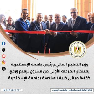 وافتتح الدكتور أيمن عاشور، وزير التعليم العالي والبحث العلمي، المرحلة الأولى من أعمال ترميم ورفع كفاءة مباني كلية الهندسة بجامعة الإسكندرية، وأكد الدكتور أيمن عاشور أهمية تنفيذ مشروعات تطوير ورفع كفاءة المباني الجامعية لدعم جهود الارتقاء بالمنظومة التعليمية وتوفير بيئة تعليمية مُتميزة ومحفزة للطلاب على الإبداع والتميز.