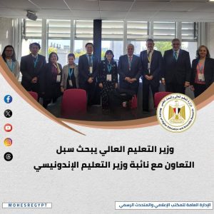 والتقى الدكتور أيمن عاشور بالدكتورة ستيلا كريستي نائبة وزير التعليم الإندونيسي، حيث أبدت رغبتها في الاستفادة من تجربة مصر في “التعليم العابر للحدود” ورغبتها في التعاون مع وزارة التعليم العالي والبحث العلمي في مجالات بحثية مختلفة مرتبطة بتكنولوجيا الطاقة، والزراعة، والموارد الطبيعية الرئيسية مثل المعادن، وأشار الوزير إلى إمكانية زيادة التعاون بين الجانبين في مختلف المجالات ذات الاهتمام المشترك، مؤكدًا أهمية بناء قنوات تعاون متعددة وخاصة في مجالات البحث العلمي، والتشجيع على استقبال الهيئة المعاونة من الجامعات الإندونيسية لاستكمال الدراسات العليا بمصر.