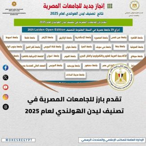وأعلن تصنيف ليدن (CWTS Leiden Ranking) الهولندي نتائجه الجديدة لعام 2025، والتي أظهرت تقدمًا ملحوظًا للجامعات المصرية، وذلك في إطار التقدم المستمر الذي تُحققه الجامعات المصرية في مختلف التصنيفات الدولية المرموقة، ويعتمد تصنيف ليدن لعام 2025 على منهجيتين رئيسيتين؛ الأولى هي النسخة التقليدية CWTS Leiden Ranking Traditional Edition 2025 التي تعتمد على بيانات منصة Web of Science، وقد تم إدراج 15 جامعة مصرية بها، أما المنهجية الثانية فهي النسخة المفتوحة CWTS Leiden Ranking Open Edition 2025، والتي أُطلقت منذ عامين وتعتمد على بيانات منصة OpenAlex، وقد شهدت إدراج 29 جامعة مصرية ضمن 2800 جامعة عالمية.