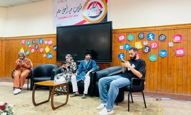 قدّم طلاب أسرة طلاب من أجل مصر بجامعة الدلتا التكنولوجية، عرضين مسرحيين، الأول بعنوان “عائلة أون لاين”، تناولوا من خلاله التأثيرات السلبية لمواقع التواصل الإجتماعى على العلاقات الأسرية، وكيف ادت المبالغة فى استخدامها إلى ضعف التواصل الحقيقى بين أفراد العائلة.