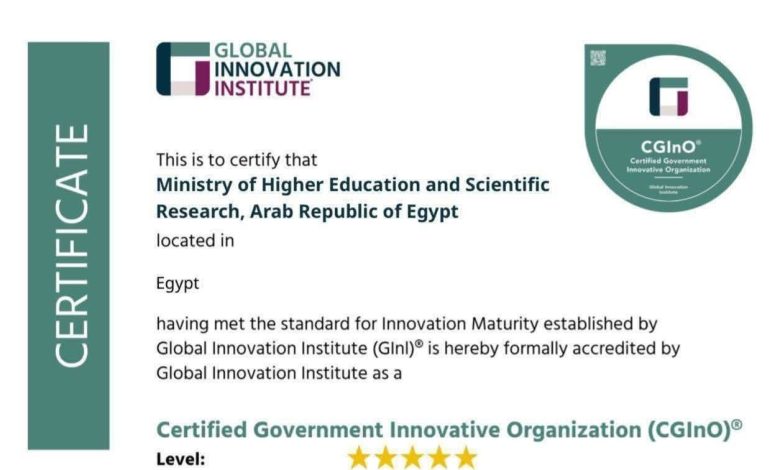 «التعليم العالي» المصرية أول جهة حكومية متخصصة على مستوى العالم تنال شهادة «المنظمة الحكومية المبتكرة المعتمدة»