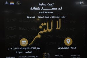 وأضافت الدكتورة سالي محمود، الأستاذ المساعد بقسم علم النفس بكلية التربية، أن مكافحة التنمر مسؤولية مشتركة تبدأ من الأسرة وتمتد إلى المدرسة والجامعة والمجتمع لبناء جيل قادر على احترام ذاته واحترام الآخرين.
