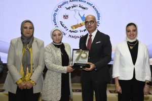 كما أعرب عن تقديره العميق لفريق الهيئة القومية لضمان جودة التعليم والاعتماد على ثقتهم ومجهودهم الكبير في دعم الجامعة خلال رحلة الاعتماد، موجّهًا شكره الخاص للدكتورة سافيناز الحبشي على توليها ملف الاعتماد بكفاءة واقتدار، والدكتورة يوهانسن عيد رئيس الهيئة القومية لضمان جودة التعليم والاعتماد سابقاً وللدكتورة رشا خفاجي مدير مركز ضمان الجودة والاعتماد بالجامعة سابقاً، على جهودها المخلصة التي أسهمت في إنجاح هذه المنظومة المتميزة.