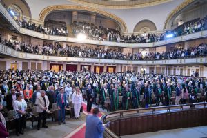 بدأت فعاليات الاحتفال بالتقاط الصورة الجماعية للخريجين أمام قبة الجامعة، ثم انتقل الحضور إلى قاعة الاحتفالات الكبرى حيث افتُتِح الحفل بعزف السلام الجمهوري وتلاوة آيات من القرآن الكريم.