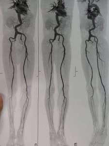 Aorto bi-iliac bypass with re-anastmosis of IIA using a pantaloon graft for a huge AORTOILIAC aneurysm،