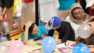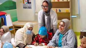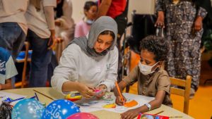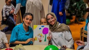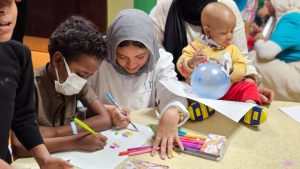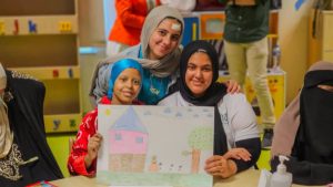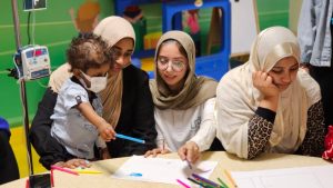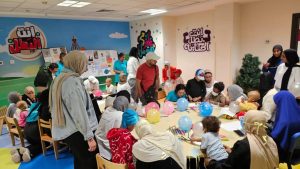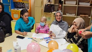 وهدفت الورشة إلى إدخال البهجة والسرور على الأطفال من خلال الرسم والألوان والأنشطة الإبداعية التي تساعدهم على التعبير والتفريغ النفسي، كما تضمنت الفعالية توزيع الهدايا على الأطفال لإسعادهم ودعمهم المعنوي.