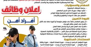 كما أعلنت جامعة مدينة السادات الأهلية عن حاجتها لتوظيف أفراد أمن (من الجنسين) للمساهمة في توفير بيئة آمنة ومستقرة لطلابها وكوادرها وأصحاب المصالح للقيام بالمهام والمسئوليات التالية: