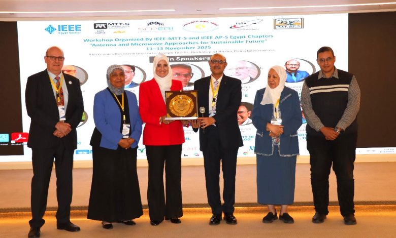 وفي هذا الإطار، استضاف معهد بحوث الإلكترونيات، ورشة العمل الدولية المشتركة التي نظمها فرعا الجمعية الدولية لمهندسى الكهرباء بمصر للهوائيات وتكنولوجيا الميكروويف IEEE AP-S & IEEE MTT-S، بعنوان “إستراتيجيات الهوائيات والميكروويف نحو مستقبل أكثر استدامة”، بحضور الدكتورة شيرين عبد القادر محرم رئيس معهد بحوث الإلكترونيات، والدكتورة هادية الحناوي أستاذة هندسة الإلكترونيات وعميد كلية الهندسة الأسبق بجامعة عين شمس، والدكتور أيمن التاجر أستاذ ورئيس قسم هندسة الإلكترونيات بالكلية الفنية العسكرية، والدكتور عصمت عبد الفتاح رئيس بحوث الإلكترونيات الأسبق، والدكتور أحمد عطية رئيس قسم الميكروويف بالمعهد.