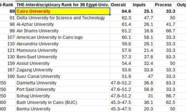 أعلنت جامعة القاهرة، تحقيق إنجاز دولي جديد يُضاف إلى سجل ريادتها الأكاديمية، بتصدرها الجامعات المصرية واحتلالها المرتبة 69 عالميًا في تصنيف Times Higher Education للتخصصات البينية لعام 2026 (Interdisciplinary Science Rankings)، والذي يُعد أحد أحدث التصنيفات النوعية المتخصصة التي تقيس أداء الجامعات في مجالات البحث العلمي متعدد التخصصات.