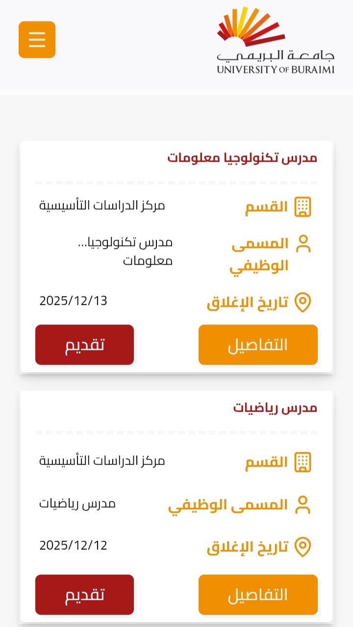 للاطلاع على التفاصيل الكاملة لوظائف جامعة البريمي وطرق التقدم، رجاء الدخول على الموقع الرسمي للجامعة عبر الرابط التالي: