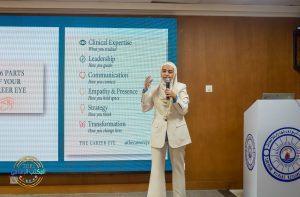 تناولت المحاضرة المفهوم الجديد لمستقبل المهن الطبية، مؤكدة أن القيمة الحقيقية للعاملين في القطاع الصحي لا تقتصر على المهارات العلمية أو السريرية، بل تمتد إلى ما يعرف بالمهارات غير الإكلينيكية، مثل حل المشكلات، القيادة، التواصل الفعال، كعناصر جوهرية للتميز في المسار المهني، مؤكدة أن القيمة الحقيقية للطبيب أو الباحث لا تقاس فقط بالعلم، بل بقدرته على التفاعل، والإدارة، وصناعة التغيير، وهي المهارات التي تحدث الفارق الحقيقي بين طبيب وآخر أو بين باحث وقائد.