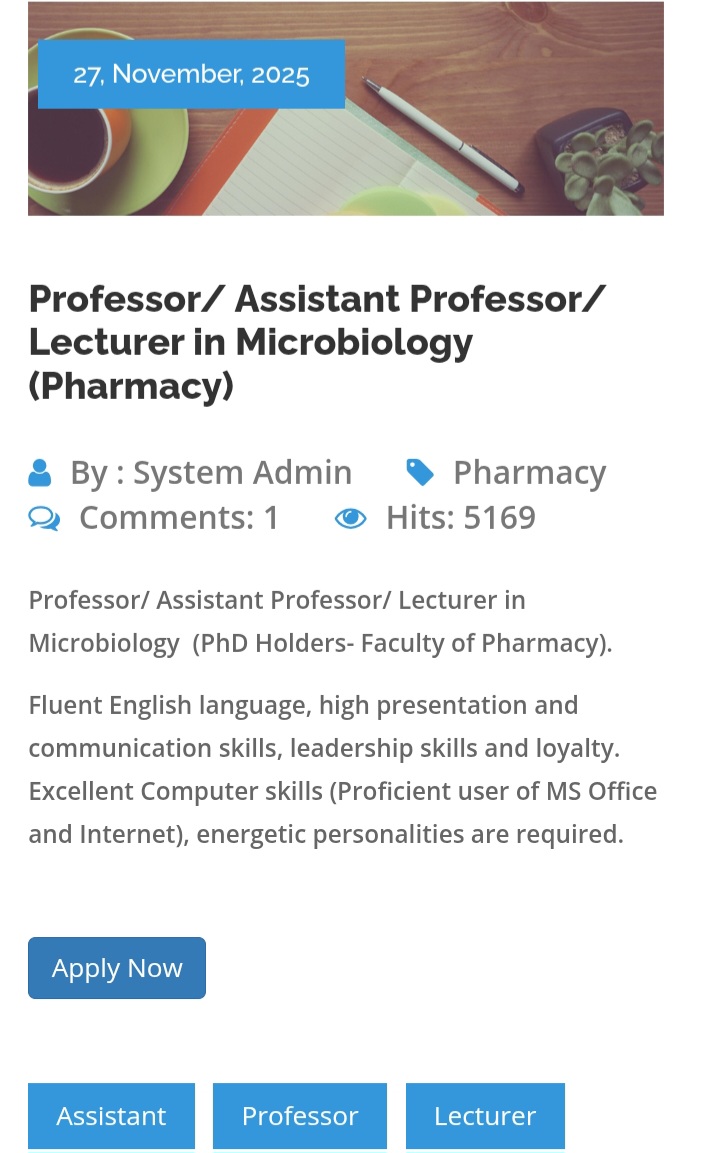 أستاذ/ أستاذ مساعد/ محاضر في علم الأحياء الدقيقة (الصيدلة)