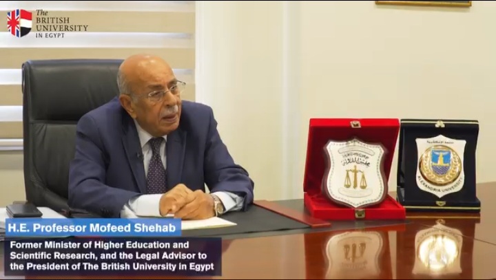 قال الدكتور مفيد شهاب، وزير التعليم العالي والبحث العلمي الأسبق والمستشار القانوني لرئيس الجامعة البريطانية في مصر، إن علاقته بالجامعة البريطانية في مصر بدأت منذ التفكير في إنشائها، وتابع: كنت معجبا بالجامعة ومشيدات بالخطوات التي تتخذها للتطوير والأنشطة والإنجازات التي تحققها الجامعة.