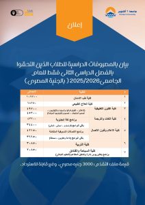 أعلنت جامعة 6 أكتوبر، فتح باب القبول للفصل الدراسي الثاني للعام الدراسي 2026-2025، وذلك في 7 كليات بالجامعة، ابتداءا من اليوم 17 ديسمبر الجاري.