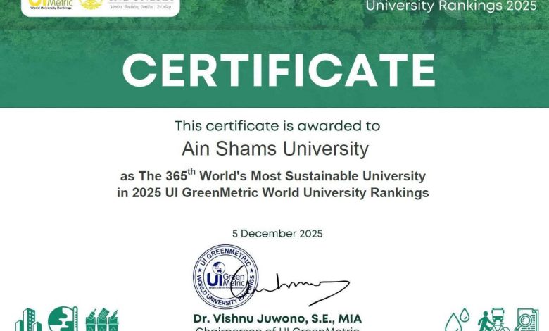جامعة عين شمس ضمن أفضل 21% من جامعات العالم في تصنيف Green Metric 2025