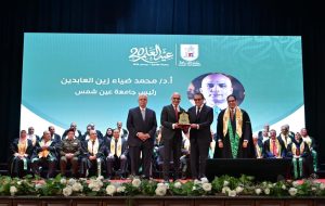 كما قدم رئيس جامعة القاهرة درع الجامعة إلى كل من الدكتور خالد عبدالغفار، وزير الصحة والسكان، والدكتور أيمن عاشور، وزير التعليم العالي والبحث العلمي، تقديرًا لدورهما البارز في النهوض بمنظومتي الصحة والتعليم العالي.