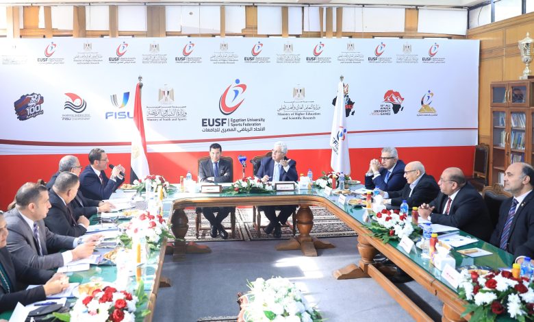 وزير التعليم العالى يترأس اجتماع مجلس إدارة الاتحاد الرياضى المصرى للجامعات بحضور وزير الشباب