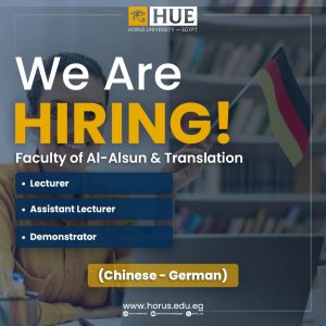 أعلنت جامعة حورس – مصر في دمياط الجديدة، عبر صفحتها الرسمية في الفيسبوك، عن فتح كلية الألسن بالجامعة باب التقدّم لشغل وظائف أعضاء هيئة التدريس (ندب كلي- ندب جزئي) وأعضاء الهيئة المعاونة (تعيين) في اللغة الألمانية واللغة الصينية.
