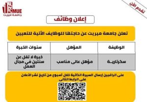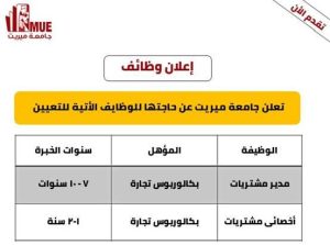 أعلنت جامعة ميريت في محافظة سوهاج، عبر صفحتها الرسمية في الفيسبوك، عن حاجتها لشغل عدد من الوظائف الشاغرة.