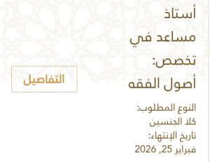 أستاذ مساعد في تخصص: أصول الفقه