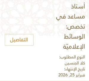 أستاذ مساعد في تخصص: الوسائط الإعلاميّة