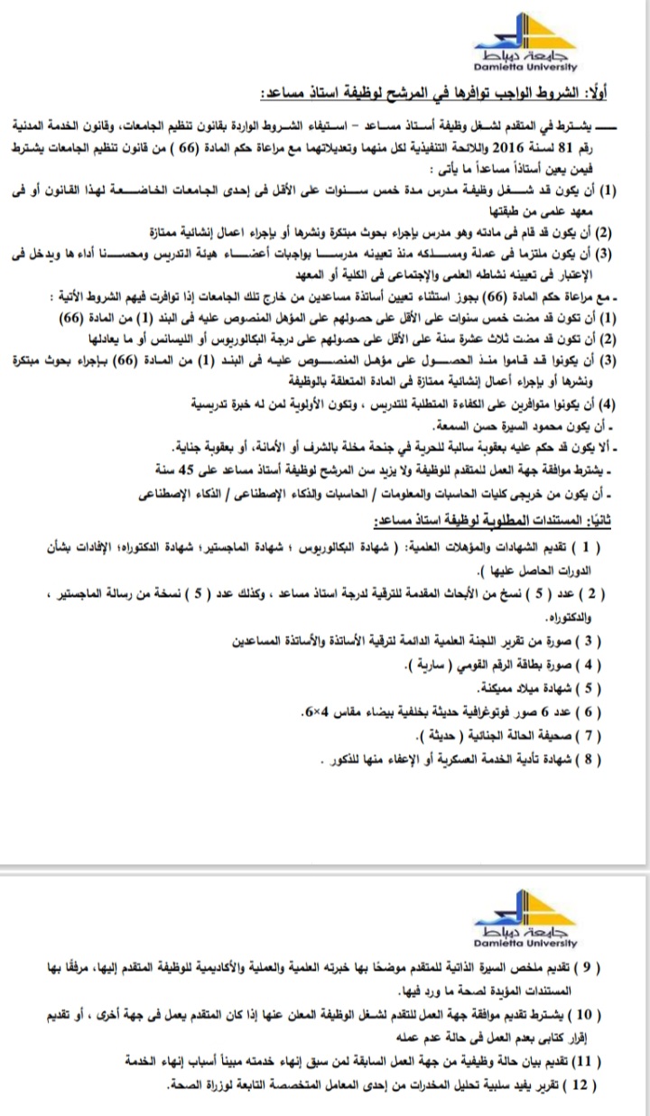 عاجل.. جامعة دمياط تفتح باب التوظيف لشغل 38 وظيفة هيئة تدريس خالية.. (ننشر التفاصيل طرق التقديم)
