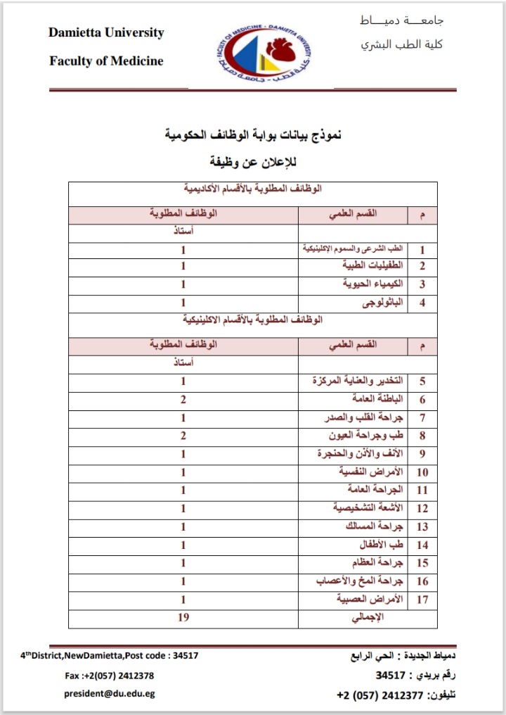 للاطلاع على التفاصيل الكاملة لوظائف جامعة دمياط وطرق التقدم، يرجى الدخول على بوابة الوظائف الحكومية عبر الرابط التالي: