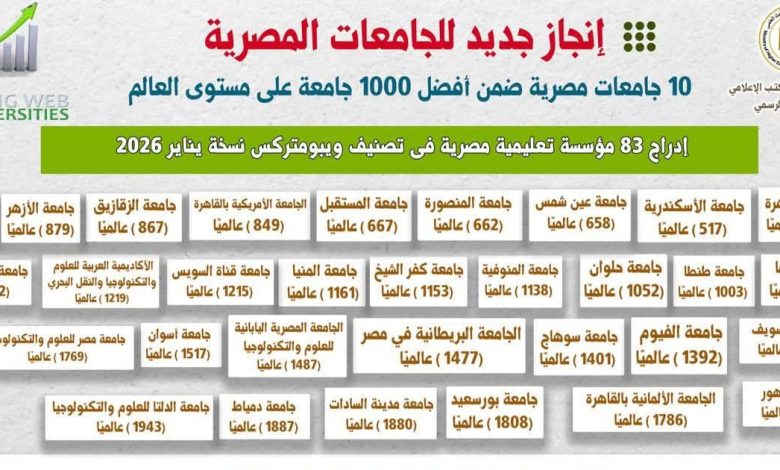 إدراج 83 مؤسسة تعليمية مصرية في تصنيف ويبومتركس العالمي نسخة يناير 2026