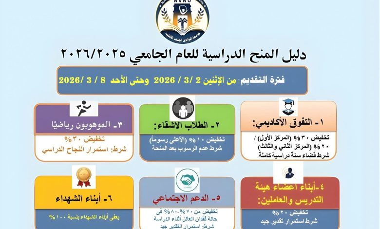 جامعة الوادي الجديد الأهلية تفتح باب التقدم للمنح الدراسية والدعم والمساعدات