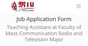 مساعد تدريس في كلية الإعلام الجماهيري، تخصص الإذاعة والتلفزيون