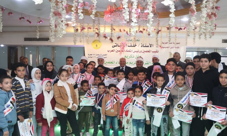 وجاء حفل التكريم في إطار حرص النقابة على دعم وتشجيع الطلاب من أبناء المعلمين على حفظ كتاب الله، وترسيخ القيم الدينية والأخلاقية لديهم، إلى جانب تحفيزهم على التفوق في مختلف المجالات التعليمية.