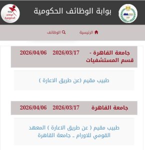 للاطلاع على التفاصيل الكاملة لوظائف جامعة القاهرة وطرق التقدم، يرجى الدخول على الموقع الرسمي لبوابة الوظائف الحكومية عبر الرابط التالي: