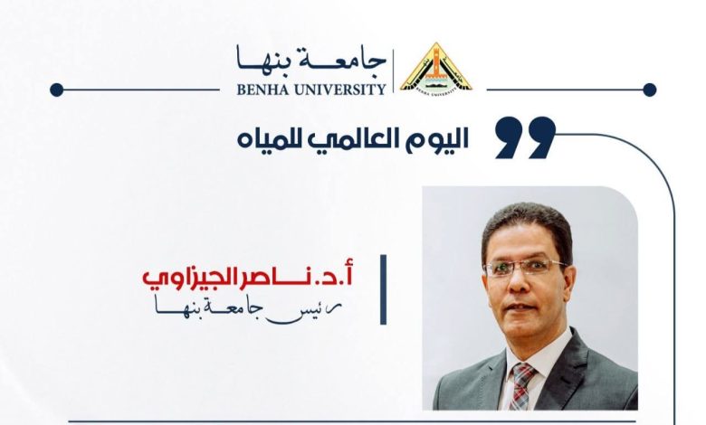 وقال الدكتور ناصر الجيزاوي، فى بيان صادر عن المكتب الإعلامي للجامعة بمناسبة اليوم العالمي للمياه الذي يوافق 22 مارس من كل عام، أن جامعة بنها حرصت على تنظيم ملتقيات بيئية وتنفيذ مشروعات بحثية تهدف إلى إدارة الموارد المائية بشكل رشيد، إلى جانب حملات توعية داخل المجتمع الجامعي والمحلي بأهمية الحفاظ على المياه.