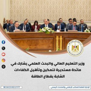 شارك الدكتور عبدالعزيز قنصوة وزير التعليم العالي والبحث العلمي، في مائدة مستديرة بعنوان: “قادة مستقبل الطاقة من الشباب.. تمكين الكفاءات الشابة لدعم قطاع الطاقة المصري”، وذلك في إطار انعقاد مؤتمر ومعرض مصر الدولي للطاقة “إيجبس 2026”، وأشار الوزير إلى أن قطاع الطاقة يعد من أكبر القطاعات توظيفًا عالميًا، وخاصة في الطاقة الجديدة والمتجددة، والتي تشهد معدلات نمو متسارعة، ما يعكس أهمية التوسع فيها خلال المرحلة المقبلة، كما أكد الوزير أن الفترة المقبلة ستشهد اهتمامًا متزايدًا بتأهيل الشباب بالجامعات في مجالات الطاقة، والتوسع في البرامج التعليمية المرتبطة بها، لرفع كفاءة وتأهيل الطلاب بشكل سريع ومرن، وتأهيل الكوادر الشابة، وتعزيز الاستثمار في الشباب كمحرك رئيسي لمستقبل قطاع الطاقة.