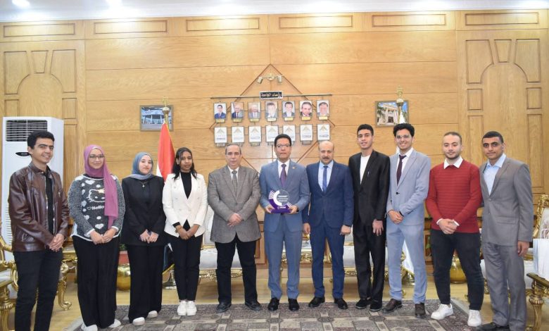 رئيس جامعة بنها يكرم طلاب علوم بنها الفائزين بالمركز الثاني فى مؤتمر ومعرض “مصر للطاقة للمهنيين الشباب”