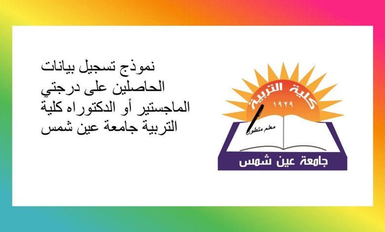 آخر موعد 11 أبريل.. تربية عين شمس تنشر رابط نموذج تسجيل بيانات الحاصلين على الماجستير والدكتوراه