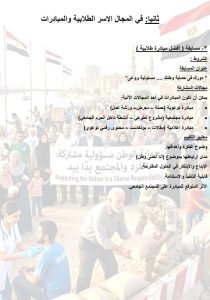 – مجال الأسر الطلابية والمبادرات: أفضل مبادرة طلابية.