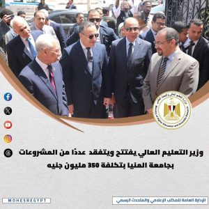افتتح الدكتور عبدالعزيز قنصوة وزير التعليم العالي والبحث العلمي، عددًا من المشروعات التعليمية والخدمية بجامعة المنيا بتكلفة تقريبية تقدر بنحو 350 مليون جنيه، وأكد الوزير أن القيادة السياسية تُولي اهتمامًا كبيرًا بالجامعات الحكومية؛ لتكون قادرة على الوفاء برسالتها الأكاديمية، من خلال التوسع في التخصصات والمجالات المطلوبة لسوق العمل وتقديم برامج دراسية حديثة تواكب متطلبات سوق العمل، وتهيئة بيئة تعليمية جاذبة للطلاب تساعدهم على اكتساب المهارات والخبرات المختلفة، والاهتمام بتقديم تدريبات عملية لتأهيل الطلاب ليكونوا قادرين على تلبية متطلبات سوق العمل المحلي والإقليمي والدولي.